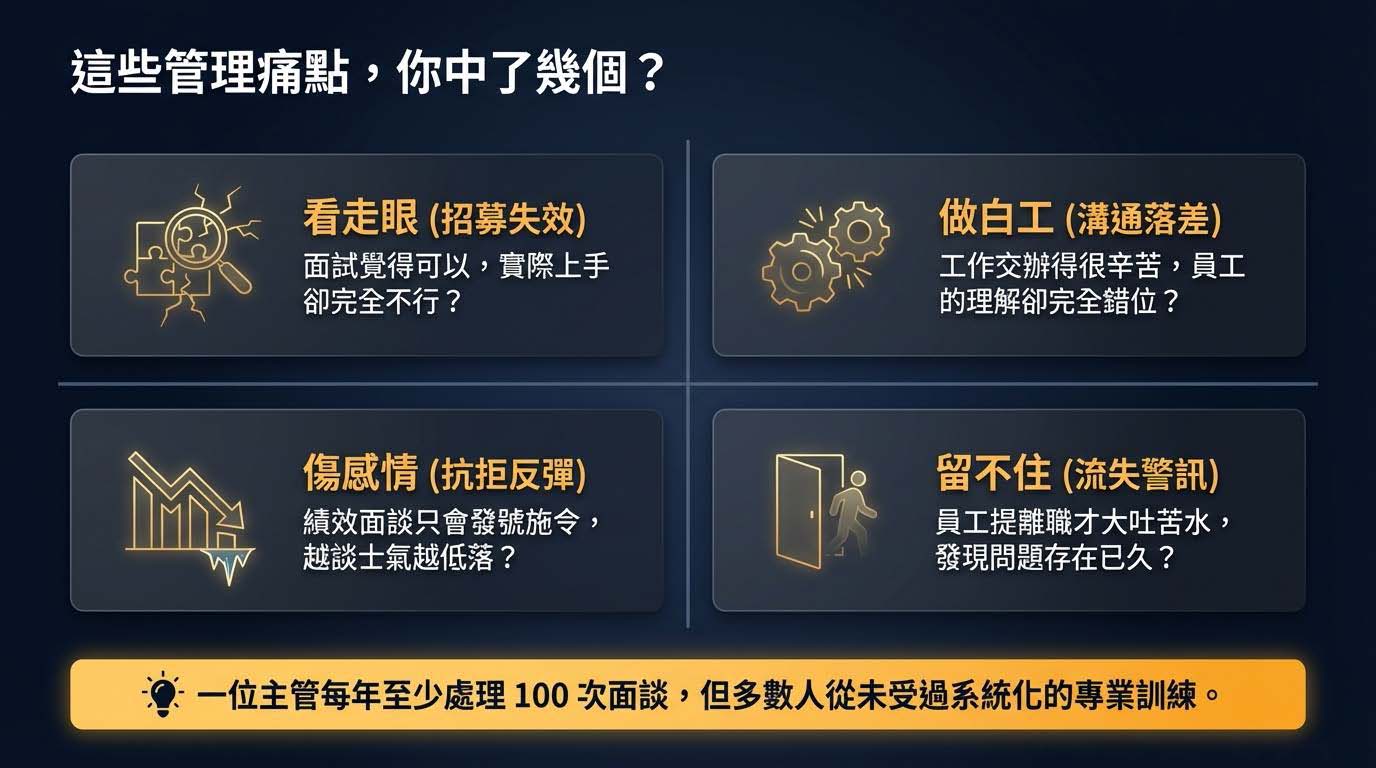 - 處理敏感議題:學會應對衝突、低績效或離職面談,降低組織風險。